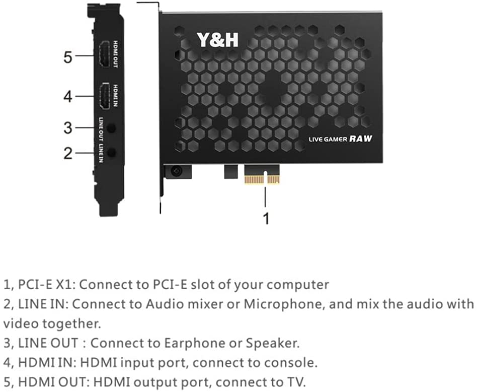 - Mehr Audiooptionen sind immer ein Plus, wenn es um die Aufnahme geht. Wenn Sie eine digitale Verbindung über HDMI-Anschlüsse herstellen, können Sie Audio von Konsolen, PCs, 3,5-mm-LINE-IN-Verbindungen zum Audiomixer oder Mikrofon aufnehmen und Audio mit Video mischen. LINE OUT: Verbinden Sie sich mit Kopfhörer oder Lautsprecher. – Die Flexibilität liegt bei Ihnen.